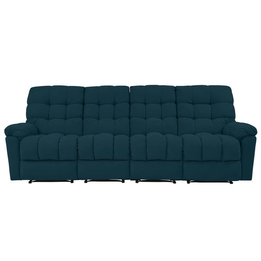 Update your home with this comfortable ProLounger modular sofa. The 4-piece wall hugger sofa recliner includes a left and right reclining arm seat and 2-armless center reclining seats that secure together through a button and slot connection on the frames so they will not slip apart. For convenience and ease, there is 1-easy to-open and reach car door-style lever on each end of the sofa and a parachute cord to recline each middle seat. Features a tailored stitched tufted back cushion for added style. Tufted cushions are filled with high density foam, polyester fiber and sinuous springs. Constructed with a laminated hardwood frame. Steel reclining mechanism. Ships in 4-boxes. Imported, color may vary.