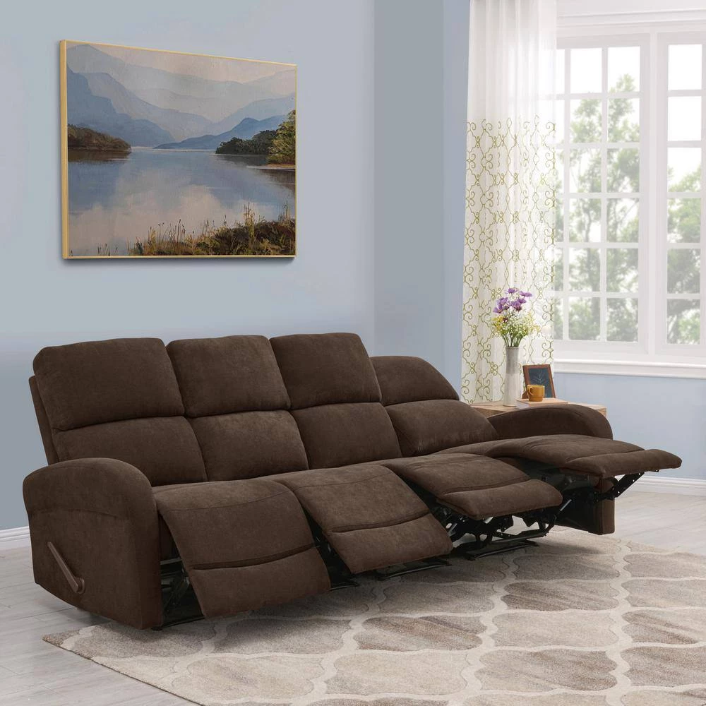 Update your home with this comfortable ProLounger modular sofa. The 4-piece sofa recliner includes a left and right reclining arm seat and 2-armless center reclining seats that secure together through a button and slot connection on the frames so they will not slip apart. The recliner sofa features easy to open and reach handles for reclining on each end and a parachute cord to recline the middle seats. Cushions are filled with high density foam, polyester fiber and sinuous springs. Constructed with a laminated hardwood frame. Steel reclining mechanism. Ships in 4-boxes. Imported, color may vary.