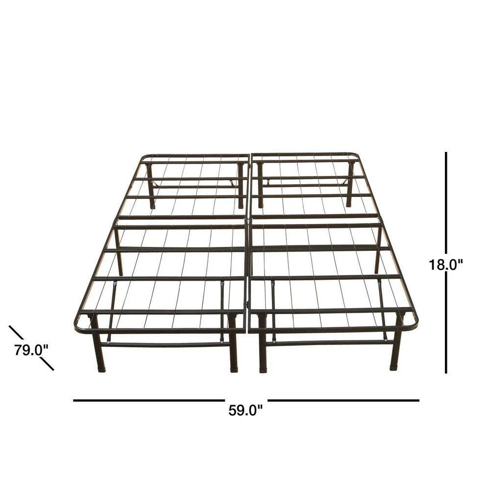 Eliminate the need for a box spring, purchase a platform foundation by Rest Rite for your Queen mattress. Rest Rite’s 18 in. Metal Mattress Frame instantly transforms your existing bed into a platform bed, making under the bed storage easily accessible. This mattress foundation provides you with 18 in. of under the bed useable storage space, traditional beds only provide 6 in. – 8 in. of storage. Rest Rite’s platform frame not only provides additional storage, it’s a fabric free option that is free of dust mites and allergens. The compact size also allows for easy transport through narrow spaces like stairwells or elevators. Constructed of 100% steel in a protective black anodized coating, this heavy duty metal mattress foundation will support up to 1,200 lbs. This mattress foundation can be used independently or with traditional bed frames, optional headboard and footboard brackets are available. Assembles in minutes.