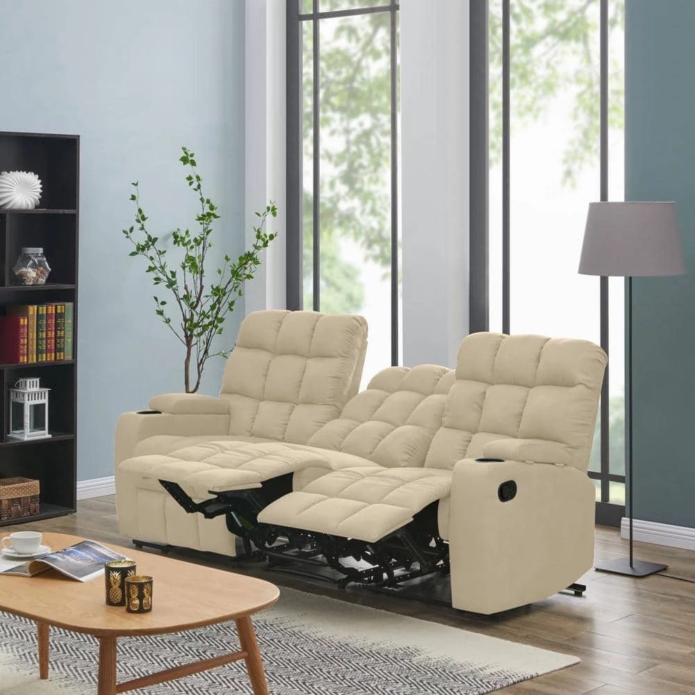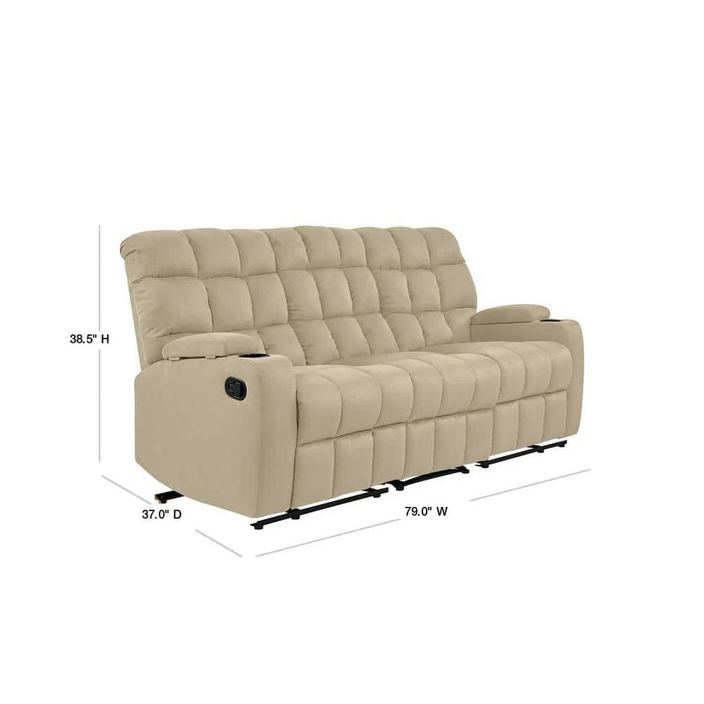 Update your home with this comfortable ProLounger modular wall hugger sofa that sports pillow top arms and is covered in a durable microfiber fabric. The 3-piece sofa recliner includes a left arm, right arm and armless reclining seat that secure together through a button and slot connection on the frames so they will not slip apart. Wall hugger design recliner only needs 4 inches of clearance from the wall to recline and uses less floor space when reclining. Required front clearance to recline is 25 inches. Each arm features a cup holder and deep well storage with an easy to open and reach “car door lever” on each side for reclining. The middle armless seat has a concealed parachute release cord for reclining. Covered in a durable, easy clean, stain resistant 100% polyester microfiber fabric. This comfortable sofa is perfect for long-term sitting, TV viewing and relaxed reclining in theater, media and living rooms. Easy connect no tool assembly, simply slide and click together in less than 30-minutes with included instructions. Imported, color may vary.