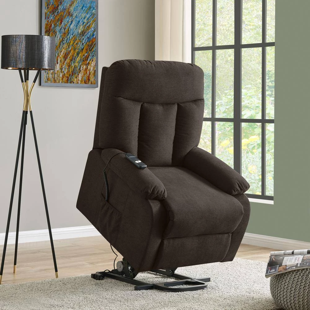 This lift recliner makes getting out of your seat a breeze. Great for the elderly or people with mobility issues, this recliner provides reclining comfort and lift support with the included wired power controller. The wired controller has only 2 buttons for lifting or reclining, simply hold the button until your desired position and comfort level are reached. Single side pocket for controller storage, TV remote and magazines. Extra-long 95 inch power cord allows for greater room placement. Recliner is 63 inches long and 27 inches high when fully reclined. Easy no tool assembly, simply slide and click together in less than 10 minutes with included instructions. Imported, color may vary.