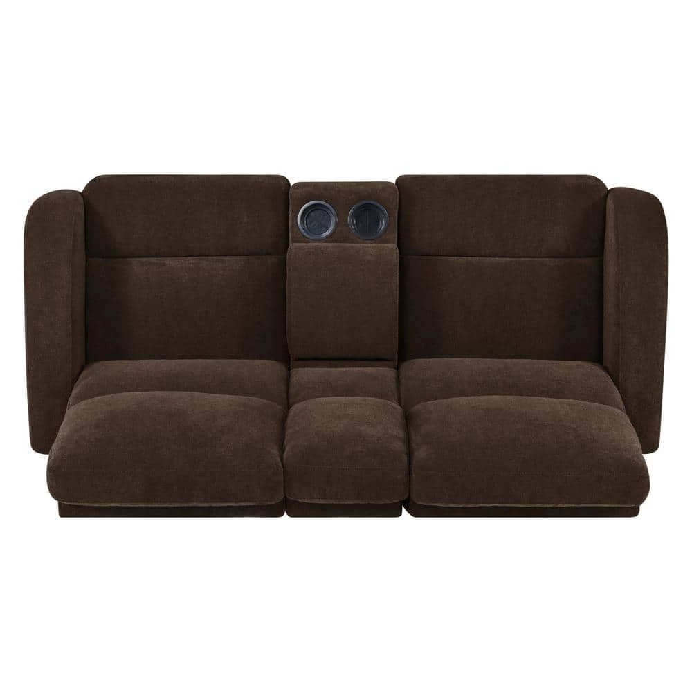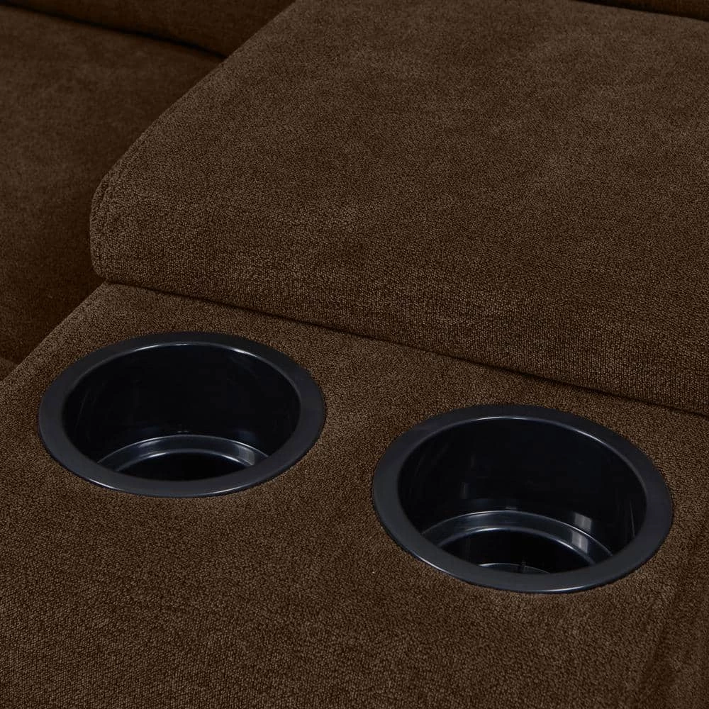 Update your home with this comfortable ProLounger modular loveseat. The 3-piece loveseat recliner includes a left and right reclining arm seat and a center console that secure together through a button and slot connection on the frame so they will not slip apart. The console features two (2) cup holders, deep well storage, two (2) USB ports and two (2) standard outlets that allows you to keep things conveniently close at hand but out of sight while being able to charge your electronic devices. Cushions are filled with high density foam, polyester fiber and sinuous springs. Steel reclining mechanism. Insulated spring clips for noise reduction. UL approved power cord to plug in center console. Ships in three (3) boxes. Imported, color may vary.