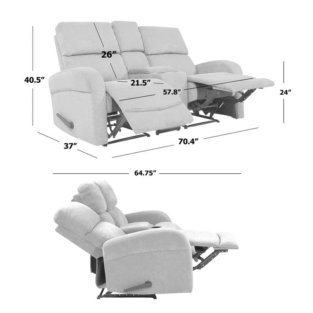 - Recliner loveseat features easy to open and reach handles for reclining on each end