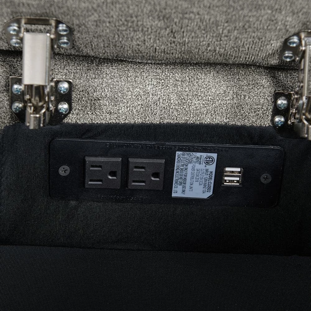 Update your home with this comfortable ProLounger modular loveseat. The 3-piece loveseat recliner includes a left and right reclining arm seat and a center console that secure together through a button and slot connection on the frame, so they will not slip apart. The console features two (2) cup holders, deep well storage, two (2) USB ports and two (2) standard outlets that allows you to keep things conveniently close at hand but out of sight while being able to charge your electronic devices. Cushions are filled with high density foam, polyester fiber and sinuous springs. Steel reclining mechanism. Insulated spring clips for noise reduction. UL approved power cord to plug in center console. Ships in three (3) boxes. Imported, color may vary.