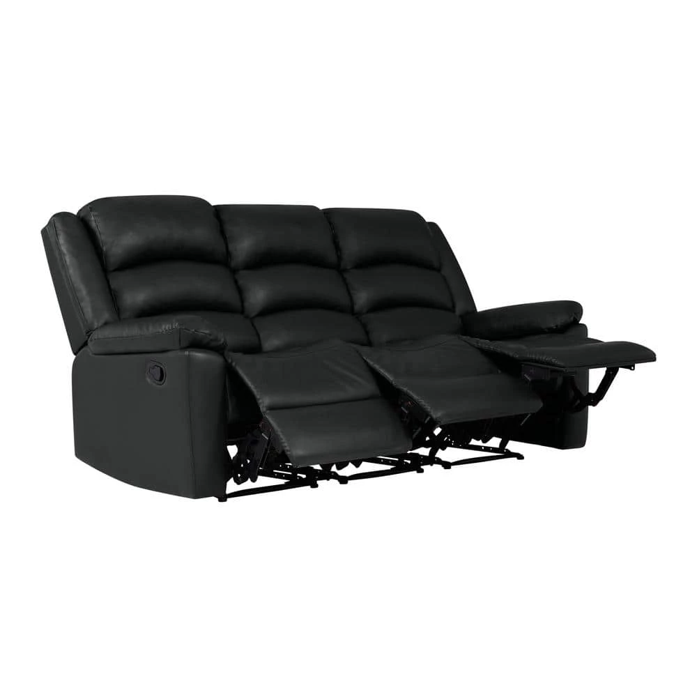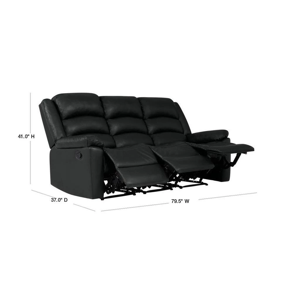 Update your home with this comfortable ProLounger modular wall hugger recliner sofa that sports pillow top arms and a tailored stitched back cushion. The 3-piece sofa recliner includes a left and right reclining arm seat and an armless center reclining seat that secure together through a button and slot connection on the frames so they will not slip apart. The recliner sofa features easy to open and reach handles for reclining on each end and a concealed parachute cord to recline the middle seat. This comfortable sofa is perfect for long-term sitting, TV viewing and relaxed reclining in theater, media and living rooms. Covered in our Tuff Stuff (55% Polyurethane, 45% Polyester), easy clean, 5 year hydrolysis tested, polyurethane fabric. Fully reclined length is 67 in. and fully reclined height is 24.5 in. Each recliner seats up to 300 lbs., so total of 900 lbs. evenly distributed. Ships in 3 boxes. Imported, color may vary.