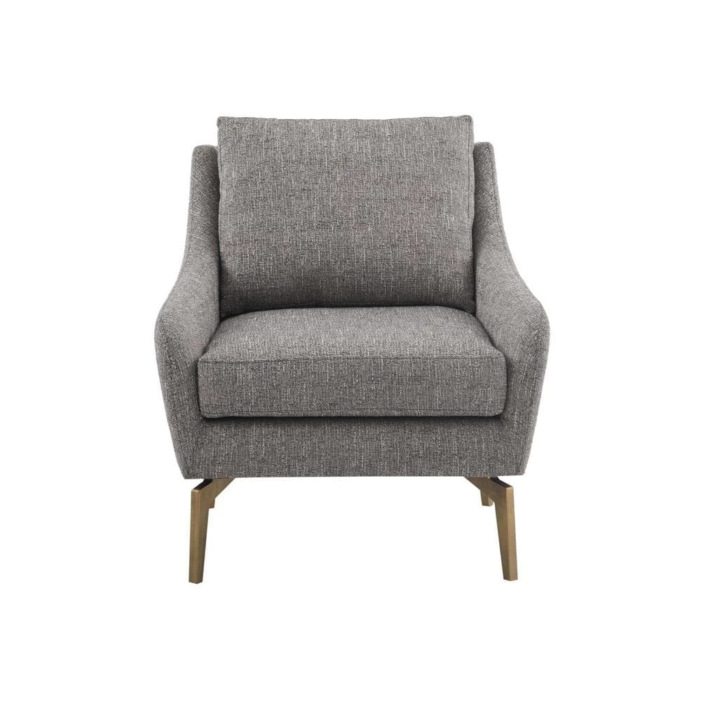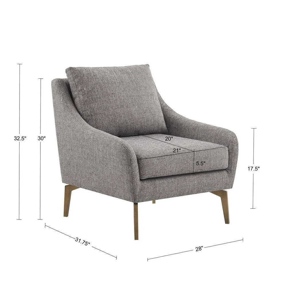 Complete your living room decor set with the Madison Park Arlene Accent Chair. This accent chair is upholstered in a multi-hued brown fabric with a removable back and seat cushion that provides exceptional comfort and support. The bronze metal legs complement the upholstery to create a stunning transitional look.