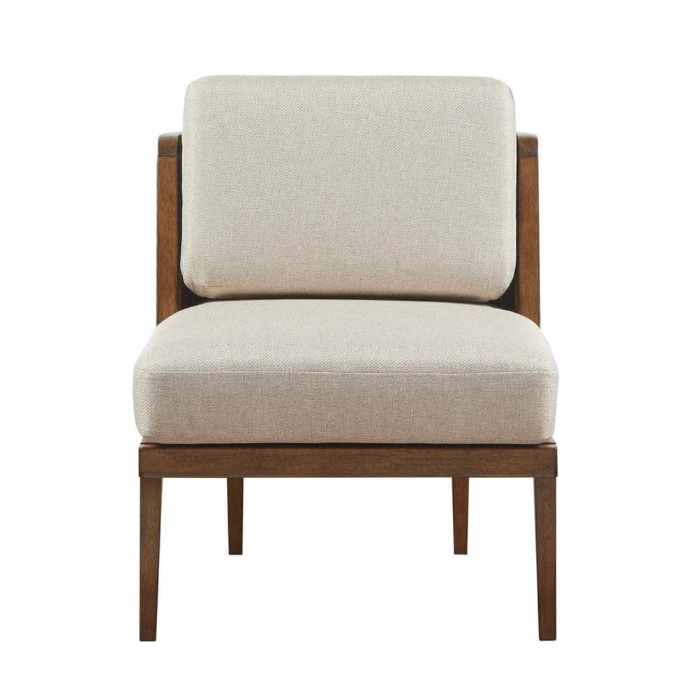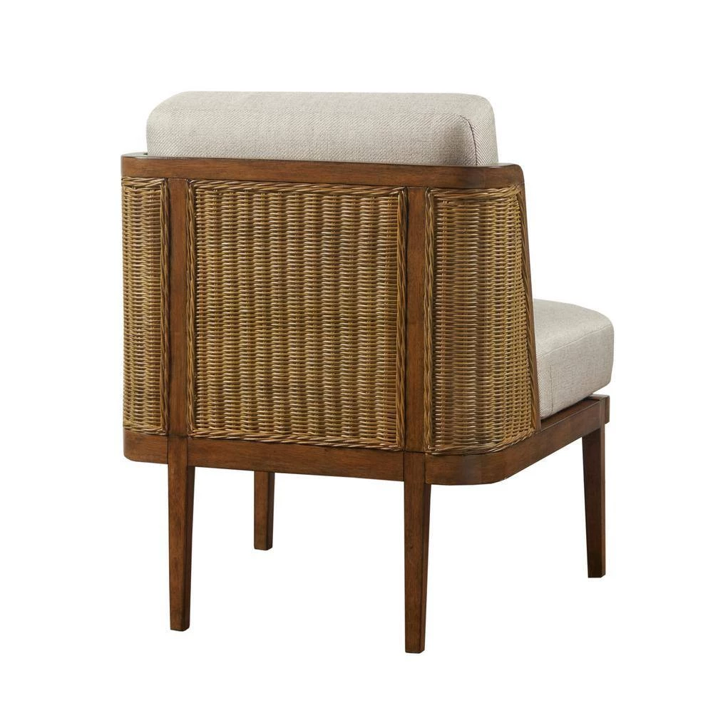 Update your living room with the coastal charm of the Madison Park Bailey Rattan Armless Chair. This armless accent chair features a rattan back and sides with upholstered seat and back cushions to create a relaxed casual look. The solid wood frame and solid wood legs have an oak finish to accentuate the coastal style. Add this boho accent chair to your living room to give your home a fresh update. Assembly is required and tools included.