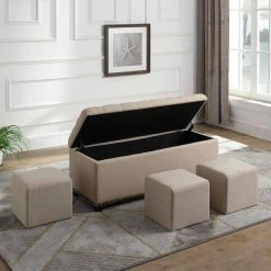 Beige Storage Bench with 3-Seating 18 in. x 45.5 in. x 17.25 in. by ORE International