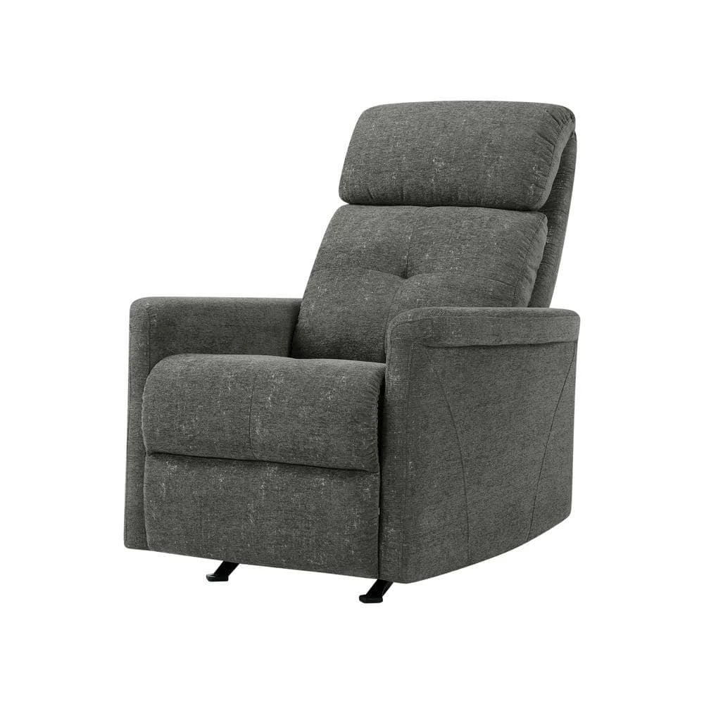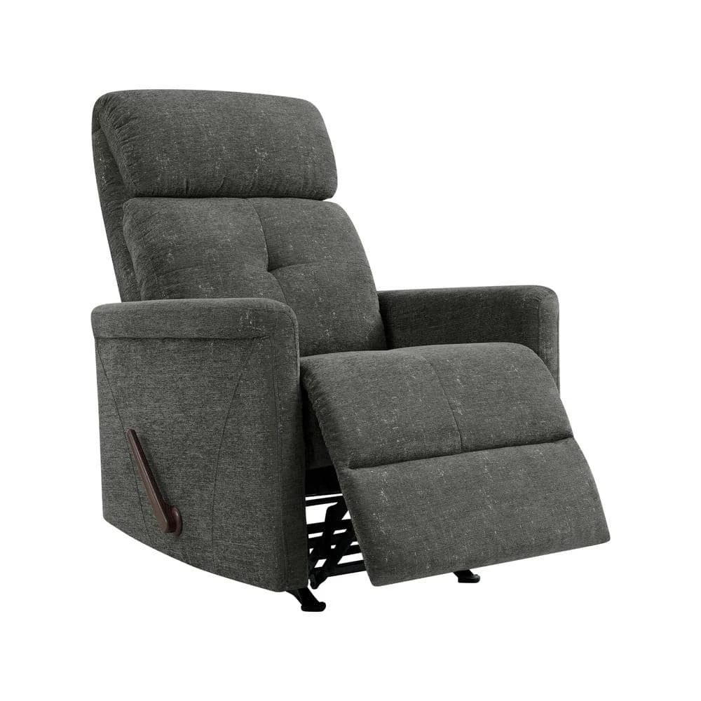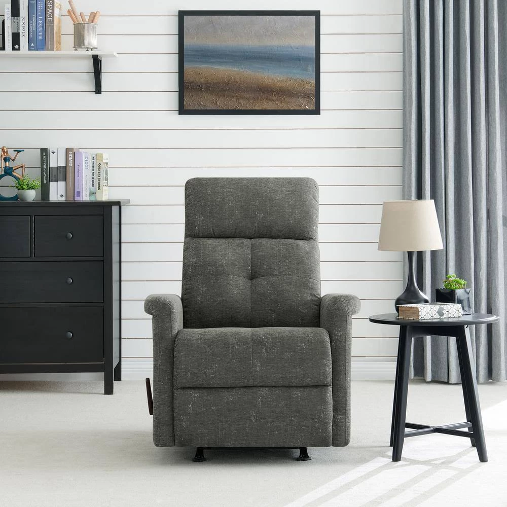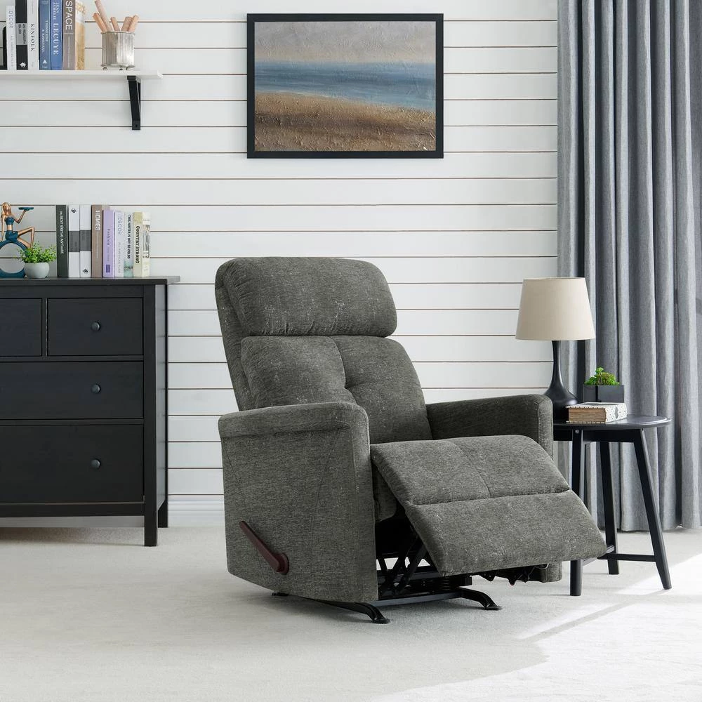 The ProLounger rocker recliner is covered in a textured chenille fabric in a modern style that will update your home. This comfortable chair allows you the option to either recline back to relax or to rock away your stress while reading or watching TV. This chair provides padding in all the right places for ultimate comfort. Perfect for living rooms, bedrooms, theater rooms and media rooms. Features round arms, tufted back cushion and an attached head rest pillow to provide ultimate comfort and added style. Covered in a durable, easy clean 100% polyester textured chenille fabric. Firm padded arm rests add to the comfort but also allow for a stable grip. Cushions are filled with high density foam, polyester fiber and an independently wrapped pocketed coil spring system for a custom sit. Easy connect no tool assembly, simply slide and click together in less than 15 minutes with included instructions. Imported, color may vary.