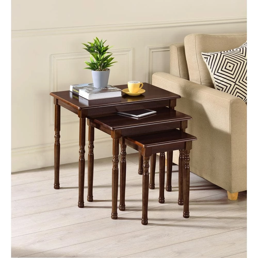 Whether you want comfort or style, the Home Decorators End Table is the perfect addition to any room. This end table features a classic style, so it will enhance your interior design with a striking and tasteful piece. It is made of wood, enhancing your living space with a timeless feel and natural beauty. This end table has a nesting design, which will complete your decor while keeping your space.