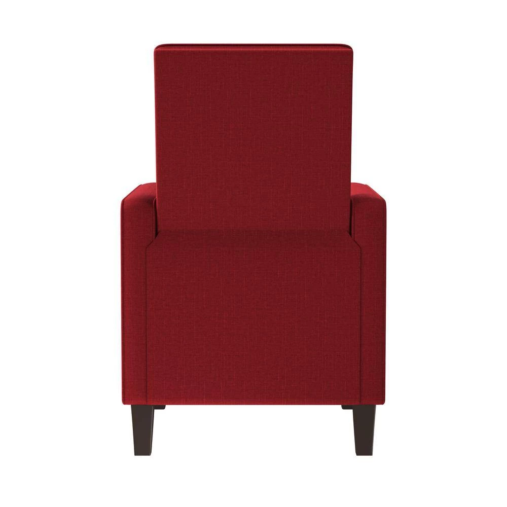 - Covered in a durable, easy clean 100% polyester cherry red textured linen-like fabric