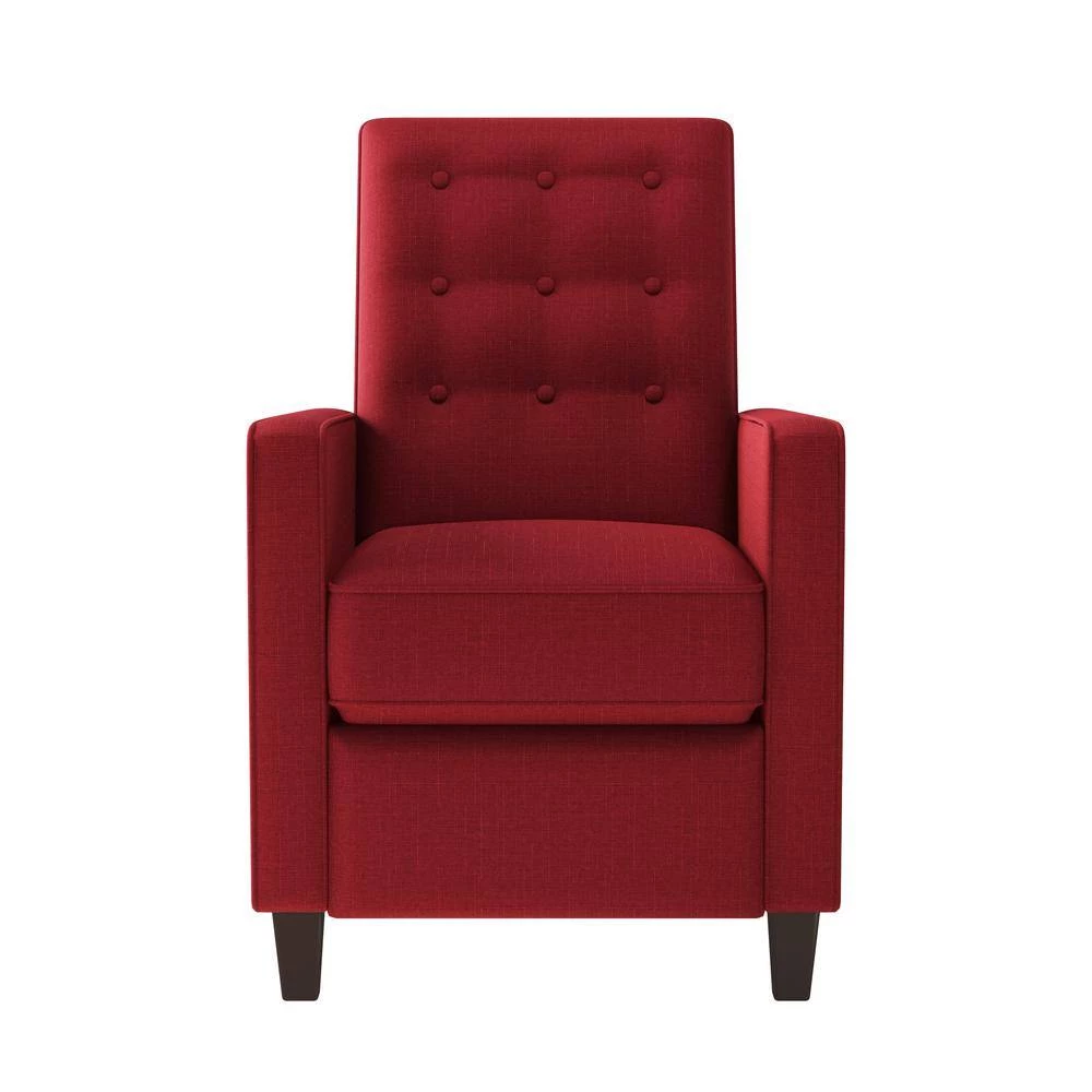This ProLounger reclining chair features squared arms and a button tufted back cushion design that is not only comfortable but beautiful as well. Simply push back to recline, no levers or handles required for comfortable long term sitting, TV viewing or just a relaxed recline. Seats up to 300 lbs. Recliner is 60 inches long and 25.75 inches high when fully reclined to a 130 degree angle. Recliner requires 16 inches of back clearance and 14 inches of front clearance to fully recline. Ships in one (1) box. Easy connect no tool assembly, simply slide and click the back into place and screw in the legs with included instructions. Imported, color may vary.