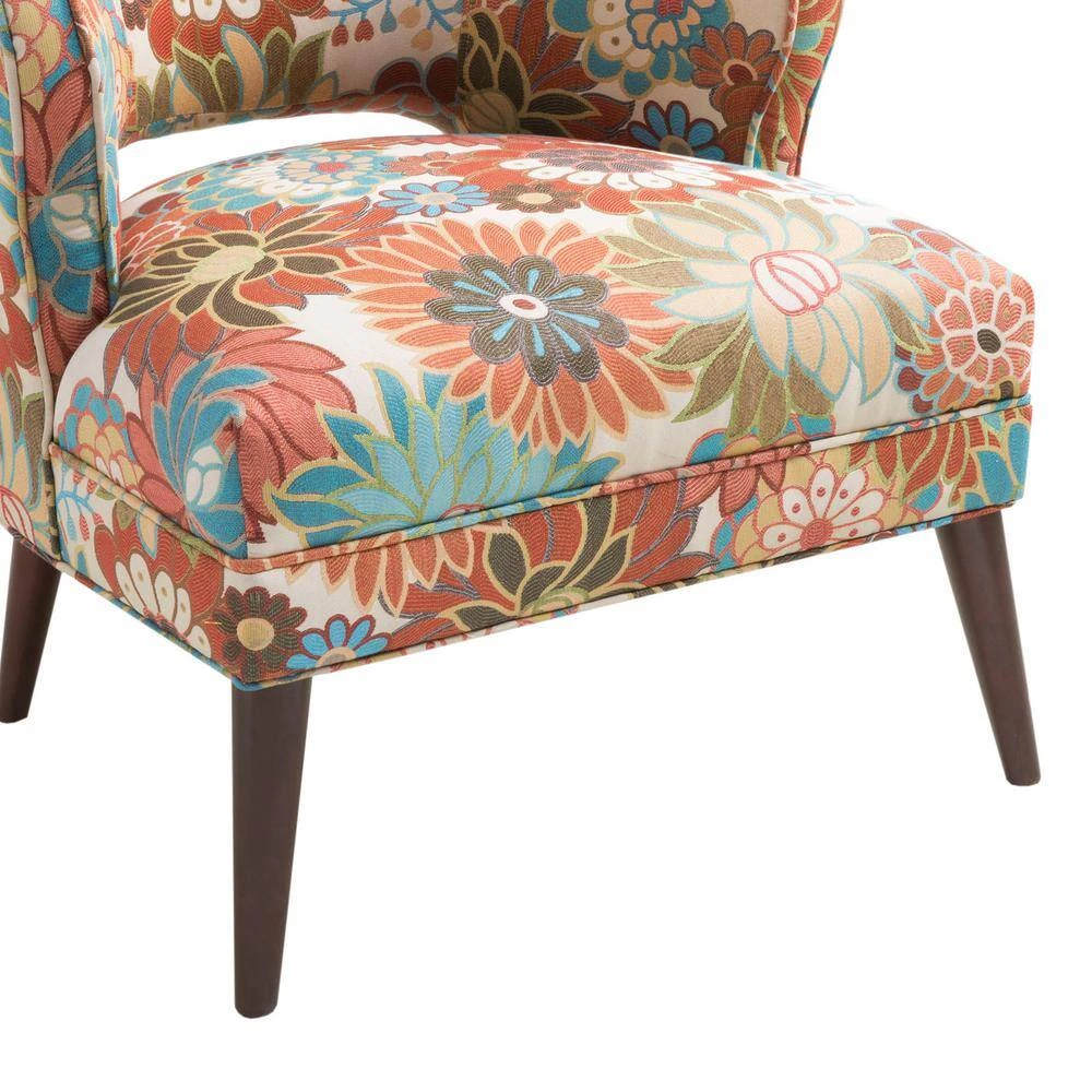 The Madison Park Embry Open Back Accent Chair offers a unique modern update to your living room. This accent chair features an open, curved back with an attached seat cushion that creates a comfortably chic look. Double piping details along the back and seat frame add dimension and highlight the contemporary design. Slim straight legs provide a sturdy base with a mid-century flair, making this accent chair the perfect addition to your home decor.