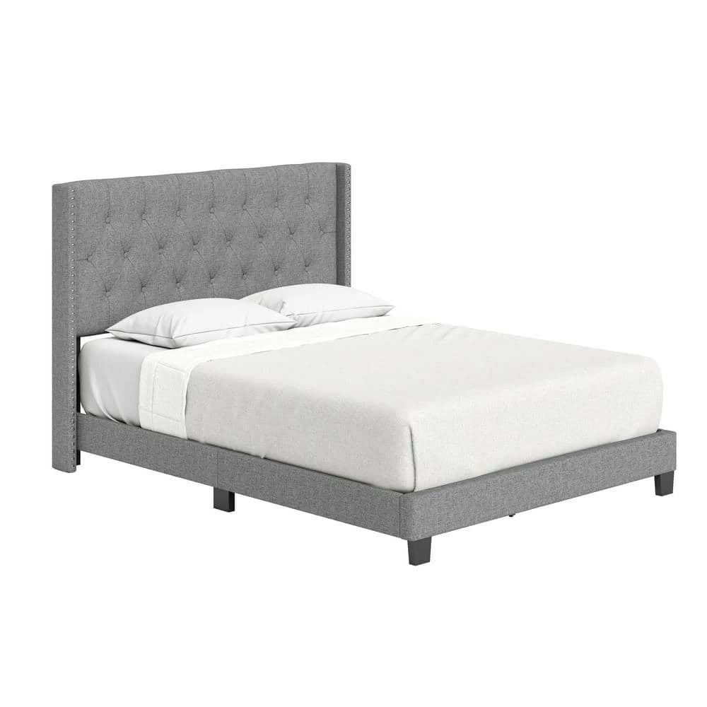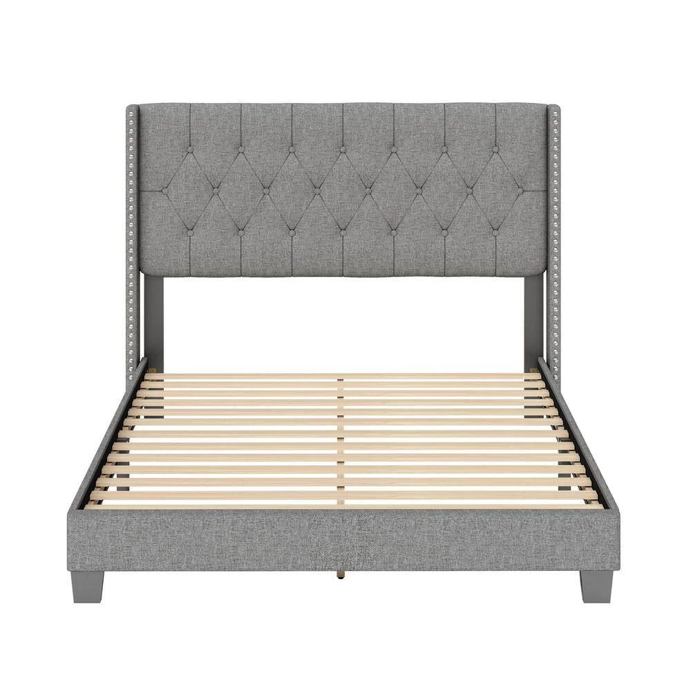 - Tufted linen platform bed