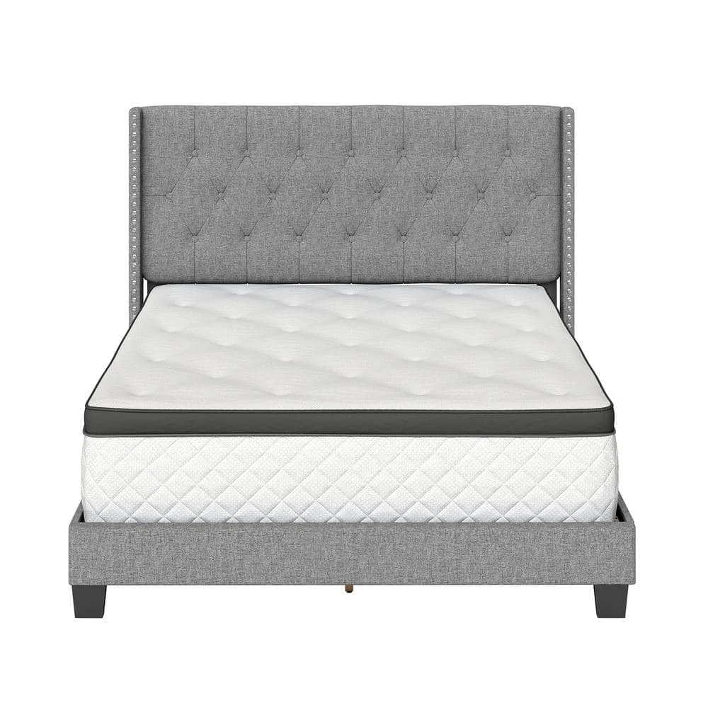 The Marlo Upholstered Linen Platform Bed exudes refinement. The polished and clean-lined nail head trim side wings, embodies all that is classy. This beautifully crafted regal platform bed is available in blue, beige and grey. While this platform bed is stylish, it’s also built to last.