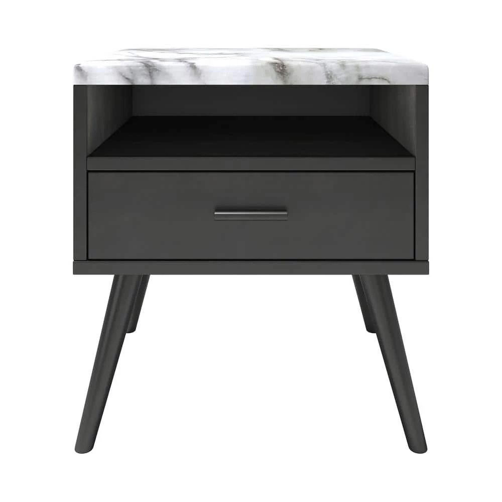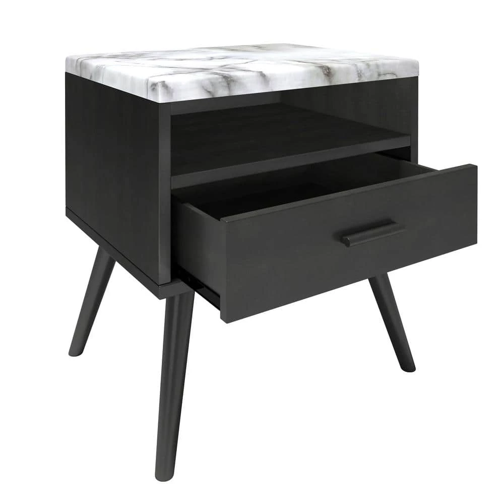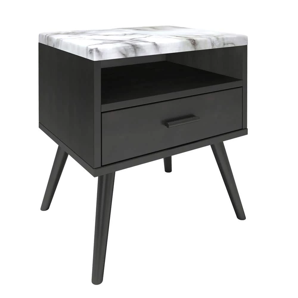 The Marlon Mid Century Marble Top Nightstand is quintessential for anyone looking to spruce up their bedroom. Whether you are in a cabin or an open urban loft, this retro inspired bedside table will create a classic high-end appeal. Crafted with durable hardwood MDF, this nightstand has a marble top and drawer with euro glides. The cubby space and mid-century modern legs make it an exceptional accent piece for any room.