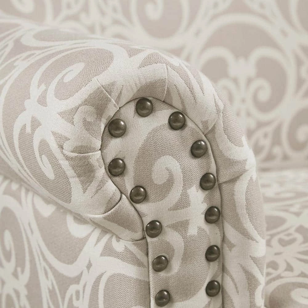 Add an eye-catching touch to your living room with the Madison Park Miri Tight Back Club Chair. This accent chair features an all-over fretwork pattern on the upholstery that creates a stunning transitional look. The double row nailhead trim on the front of the arms and the sides of the back add an elegant accent to the design. With a comfortable loose cushion and sturdy solid wood legs, this club chair brings a chic style to your home decor.
