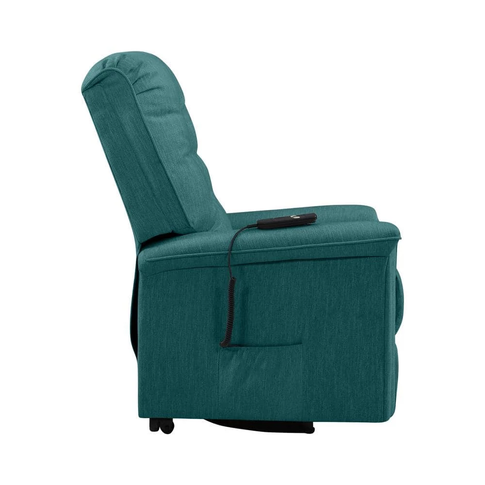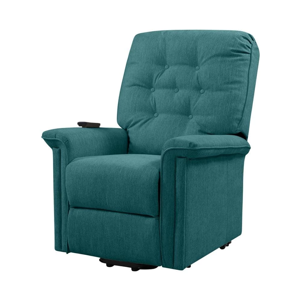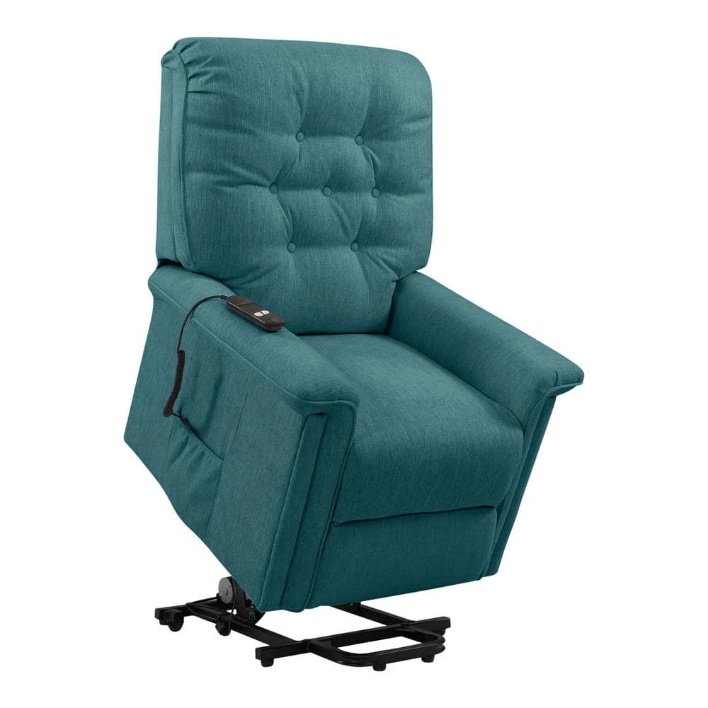 The ProLounger power lift updated traditional style recliner is covered in a herringbone fabric and allows you to rise out of your seat with ease while providing padding in all the right places for ultimate comfort. The infinite position recliner transitions between reclining, sitting and lifting and can stop at any position in-between with the easy to use wire attached remote. This power lift chair can be extremely helpful for seniors or people with mobility challenges. Perfect for living rooms, bedrooms, theater rooms and media rooms. Covered in a durable, easy clean 100% polyester soft woven herringbone patterned fabric. Convenient side pocket provides a place to store the wired remote close at hand. Recliner is 60.5 inches long and 33 inches high when fully reclined to a 150 degree angle. Recliner requires 12.5 in. in back to recline and 17.5 in. in front to recline. Seats up to 300 lbs. Ships in one (1) box. Easy connect no tool assembly, simply slide and click in less than 15 minutes to assemble with included instructions. Transformer and wall plug located underneath the seat during shipping. Imported, color may vary.