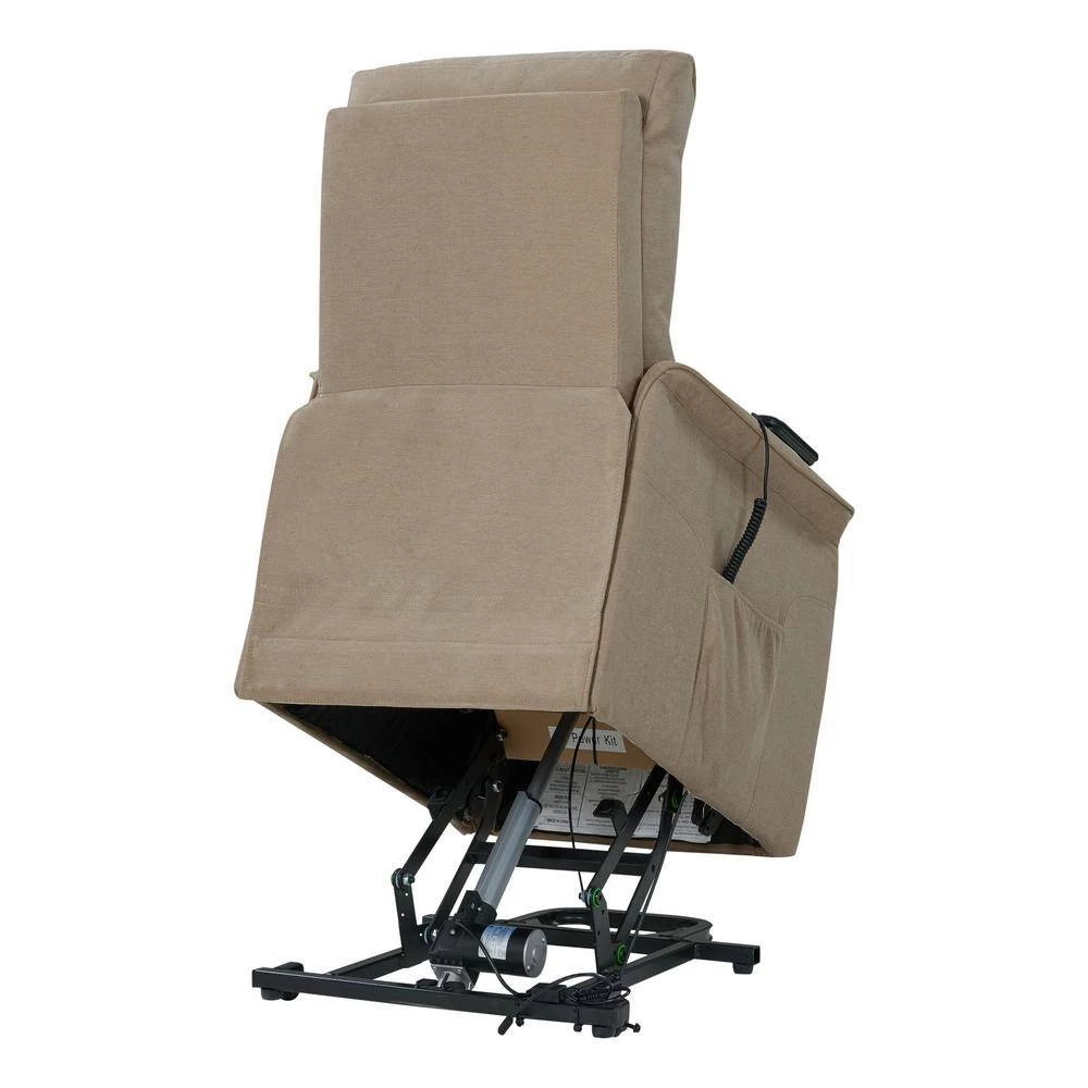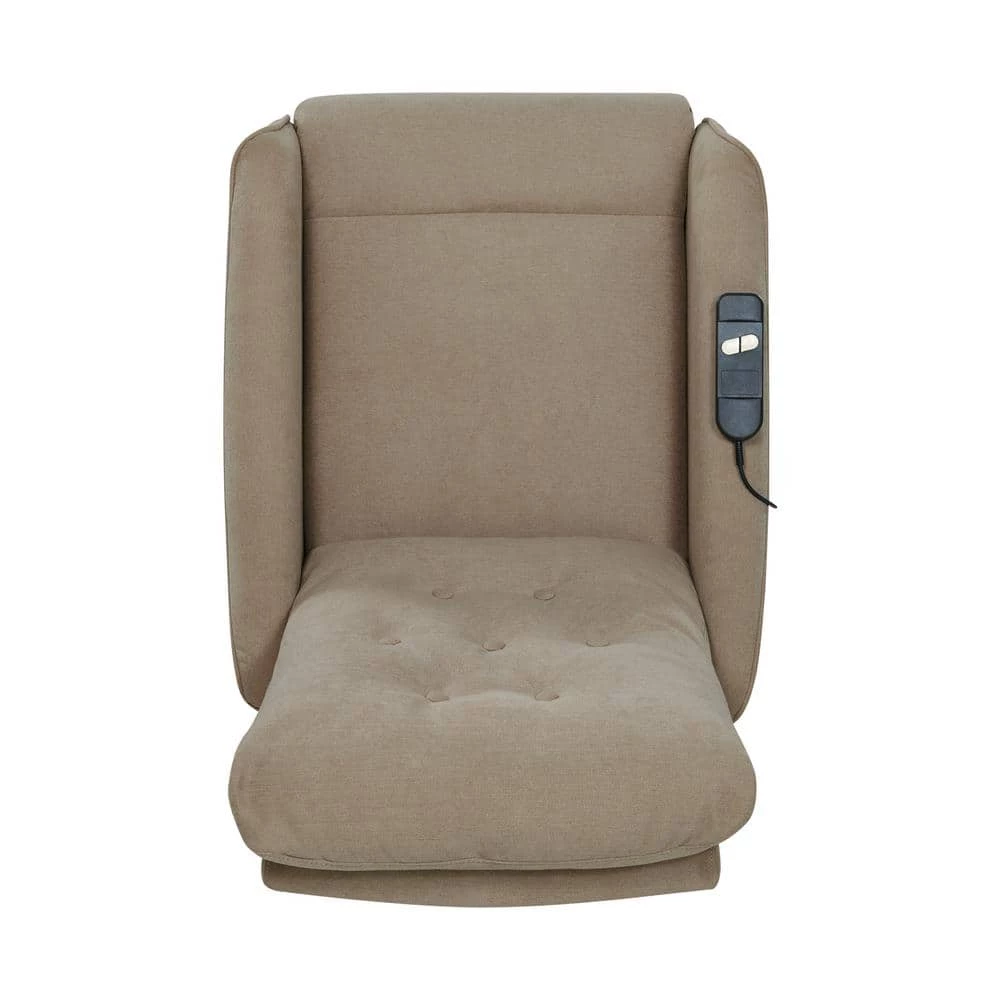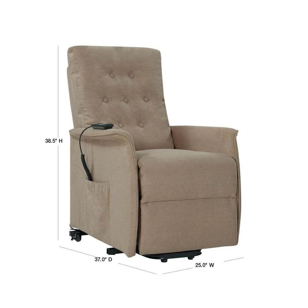 The ProLounger power lift modern style recliner is covered in a velour fabric and allows you to rise out of your seat with ease while providing padding in all the right places for ultimate comfort. The infinite position recliner transitions between reclining, sitting and lifting and can stop at any position in-between with the easy to use wire attached remote. This power lift chair can be extremely helpful for seniors or people with mobility challenges. Perfect for living rooms, bedrooms, theater rooms and media rooms. Covered in a durable, easy clean 100% polyester plush low-pile velour fabric. Convenient side pocket provides a place to store the wired remote close at hand. Recliner is 60.25 in. fully reclined, 41 in. from the back of the seat to the footrest, 19.25 in. from the seat to the top of the recliner. Recliner requires 12.5 inches in back to recline and 17.5 inches in front to recline. Seats up to 300 lbs. Ships in one (1) box. Easy connect no tool assembly, simply slide and click in less than 15 minutes to assemble with included instructions. Transformer and wall plug located underneath the seat during shipping. Imported, color may vary.