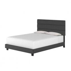 Luna Charcoal Linen Full Upholstered Platform Bed Frame with Slat System by Boyd Sleep