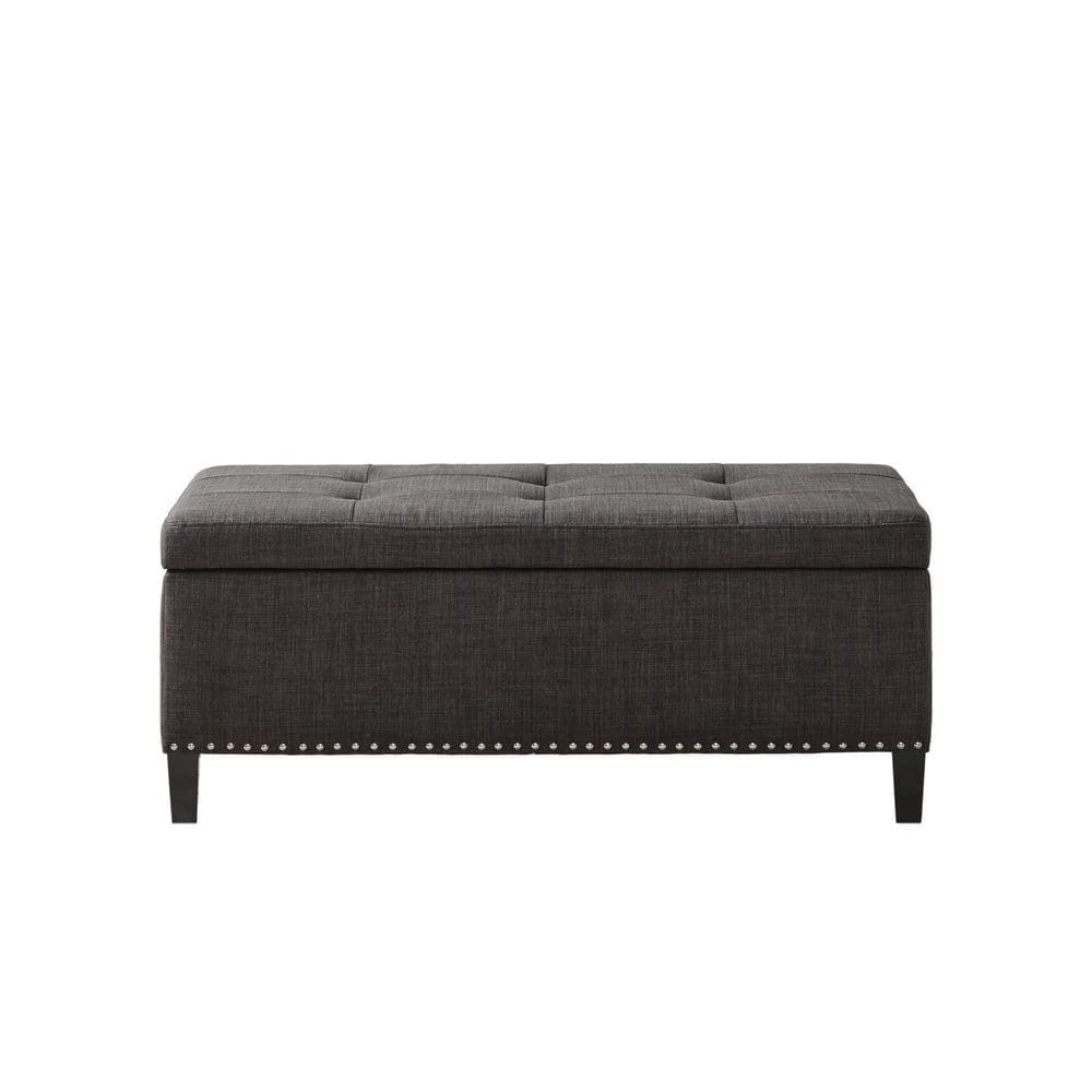 Add the Madison Park Tessa Tufted Top Storage Bench to your home decor. This simple rectangle design will make this bench fit in any living space. It is upholstered in an elegant charcoal fabric with deep button tufting details on the seat cushion. Lift the seat up to access the spacious storage space.