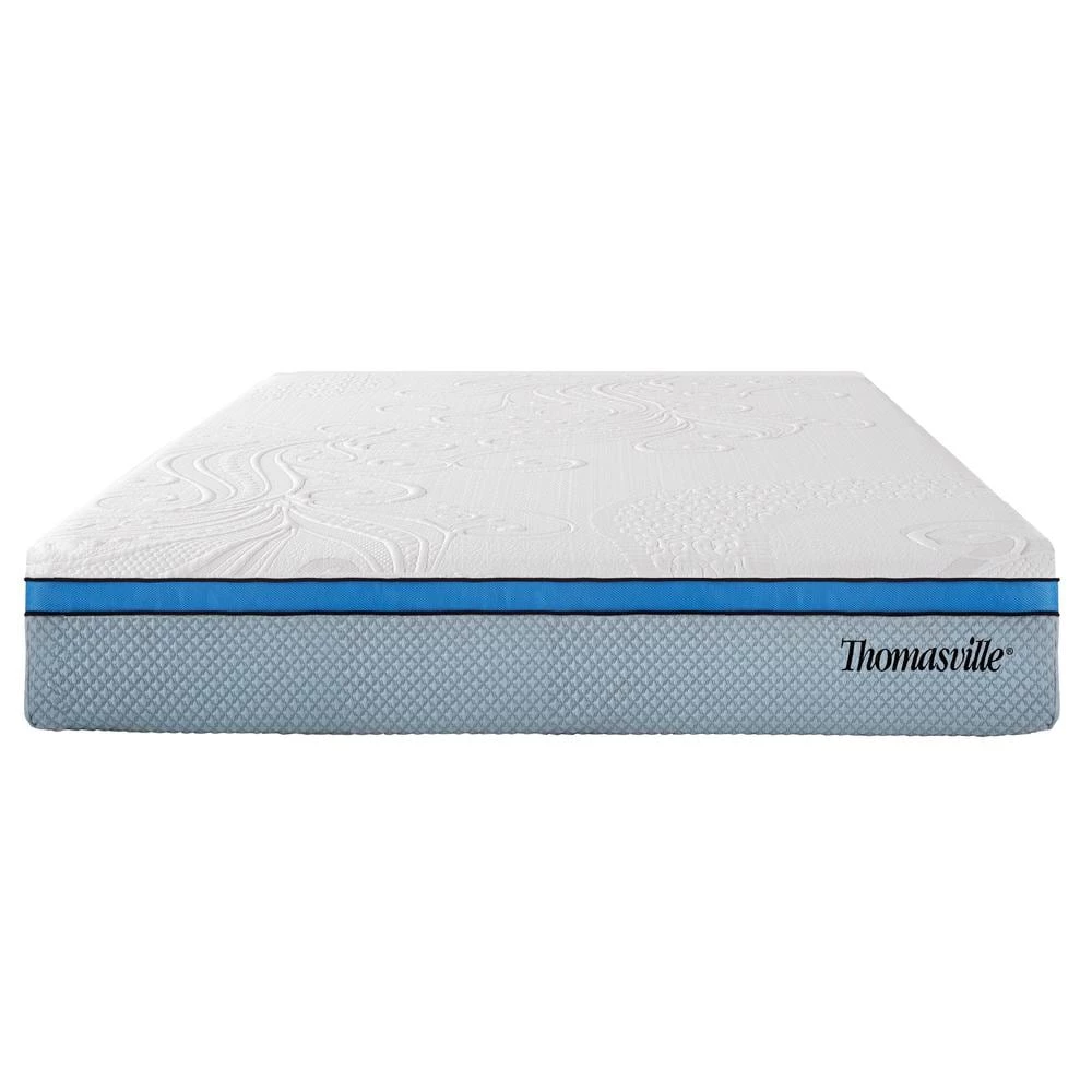 With unmatched temperature control and the comfort you’ve come to expect from a Thomasville mattress, Thomasville’s Tranquility 12″ Air Flow Gel Memory Foam mattress provides a no-compromises sleep solution and industry leading sleep technology. An 8″ Reflexa Foam Base layer uses a high-density support foam that contours to your body for proper ergonomic spinal alignment. 2″ of ultra-responsive Engineered Latex foam coupled with a patented Edge Plus perimeter support foam tray reduces mattress sag and prevents roll-off. The Tranquility utilizes Cooling Air Flow Gel Memory Foam with a unique cell structure featuring large, self-ventilated openings. These openings allow refreshing air to freely circulate and help maintain a cooler sleep experience than other mattresses. Soothing to the touch, Thomasville’s innovative Ice Lux enhanced fabric cover responds to your body’s natural heat and provides a cooling effect that keeps you comfortable throughout the night. All Thomasville mattress foams are CertiPUR-US certified, having undergone rigorous laboratory testing to surpass standards for flammability, VOCs and overall foam manufacturing processes.