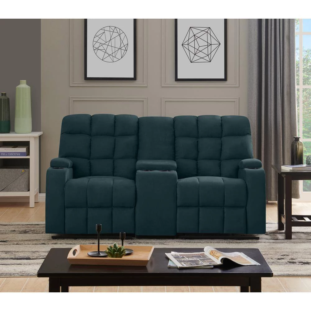 Update your home with this comfortable ProLounger modular wall hugger loveseat that sports pillow top arms and is covered in a durable microfiber fabric. The 3-piece loveseat recliner includes a left and right reclining arm seat and a center console that secure together through a button and slot connection on the frames so they will not slip apart. The recliner loveseat features easy to open and reach handles on each end for reclining with a center upholstered console equipped with cup holders, deep well storage, 2 USB ports and 2-standard outlets that allows you to keep things conveniently close at hand but out of sight as well as to charge your electronic devices. This comfortable loveseat is perfect for long-term sitting, tv viewing and relaxed reclining in theater, media and living rooms. Covered in a durable, easy clean, stain resistant 100% polyester microfiber fabric. Easy connect no tool assembly, simply slide and click together in less than 30 minutes with included instructions. Imported, color may vary.